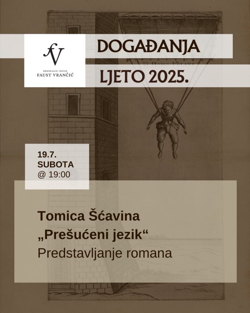 U subotu 19.7. s početkom u 9:30h u Memorijalnom centru “Faust Vrančić” otvaramo Ljetni program sa predstavljanjem romana Tomice Šćavina “Prešućeni jezik”. „Prešućeni jezik“ četvrti je roman Tomice Šćavine, rođene Vodičanke tj. Vodiške, kako bi rekli domaći. Roman je radnjom smješten upravo na otok Prvić pa će samim time i ovo predstavljanje biti sasvim drugačije […]