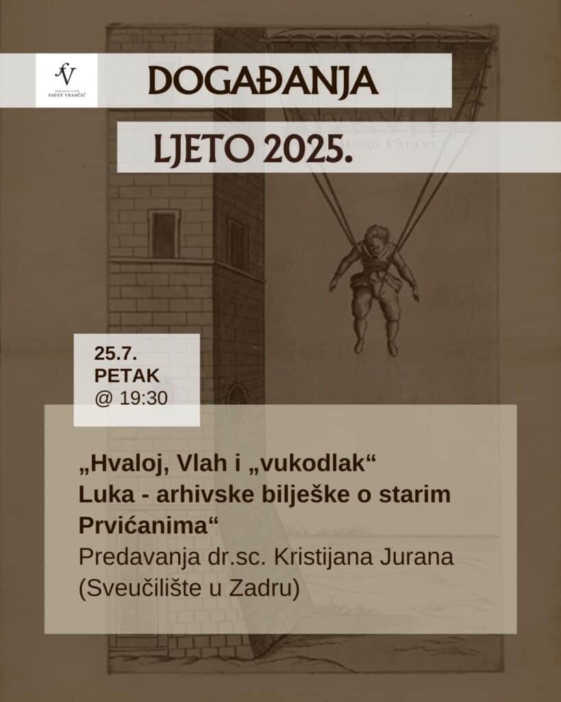 U petak 25.7. u 19:30h održat će se predavanje dr. sc. Kristijana Jurana „Hvaloj, Vlah i ‘vukodlak’ Luka“ – arhivske bilješke o starim Prvićanima. Dr. sc. Kristijan Juran sa Sveučilišta u Zadru istaknuti je povjesničar, autor brojnih knjiga i znanstvenih radova a ovom prilikom, na drugom događanju Ljetnog programa u Memorijalnom centru “Faust Vrančić”, upoznat […]