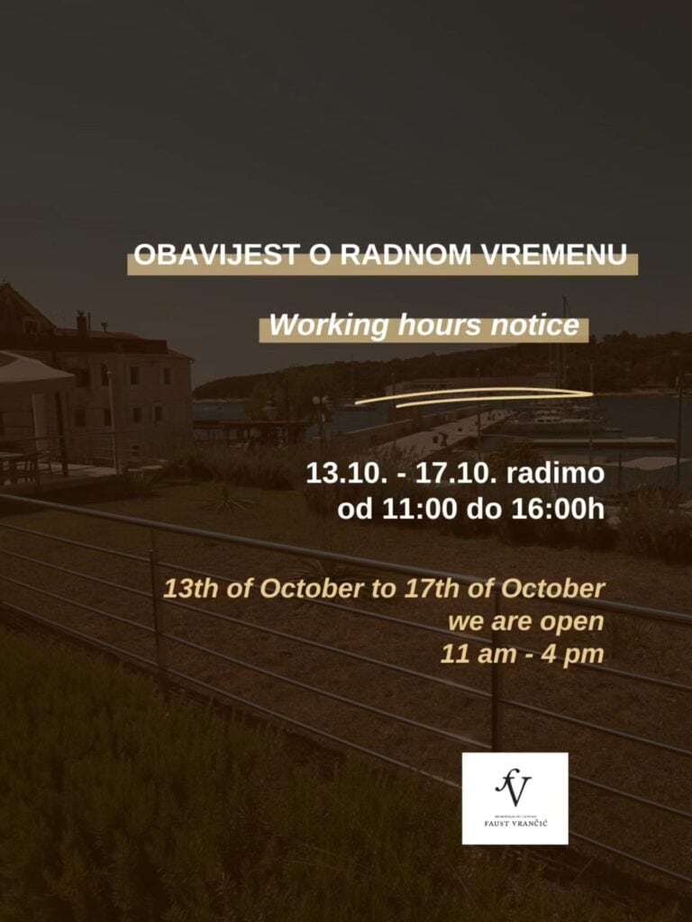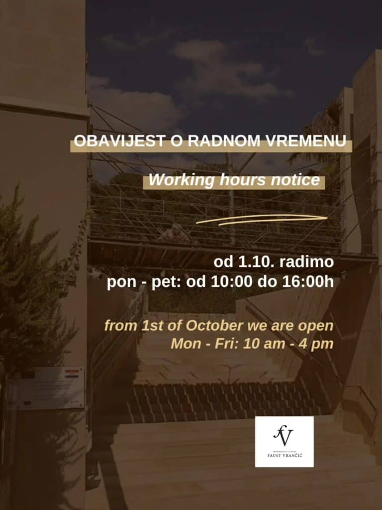 U periodu od 13. do 17. listopada Memorijalni centar “Faust Vrančić” radi od 11 do 16 h.